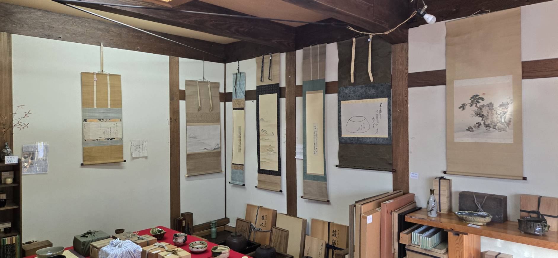 尾張藩士で俳諧、和歌、茶道、書画等、多彩で多芸だった横井也有の掛軸と、尾張国のお国焼を多数展示しております。